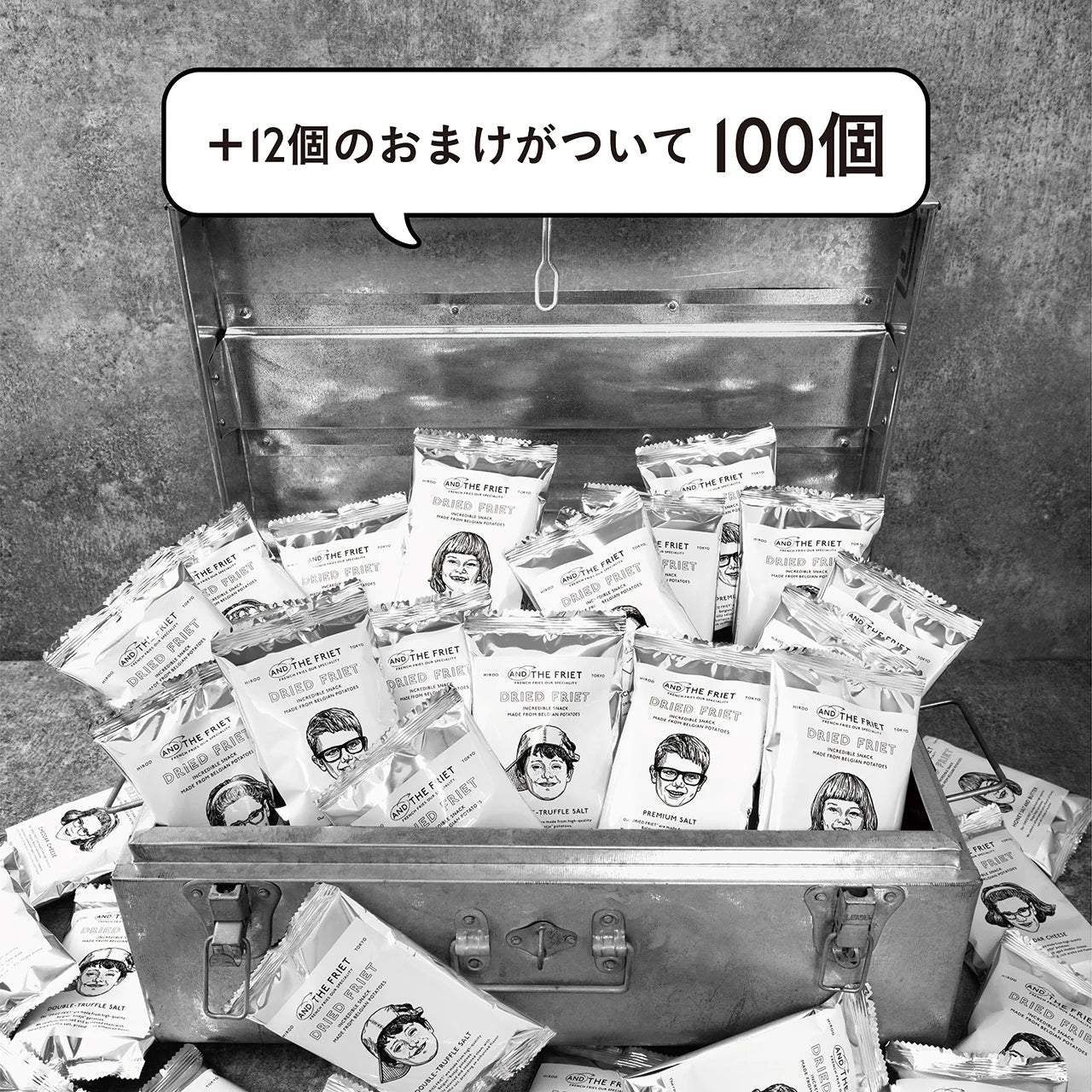 20 pieces each of Premium Salt, Cheddar Cheese, Double Truffle Salt, Honey Salt and Butter, and Anchovy and Garlic. 25g each. |