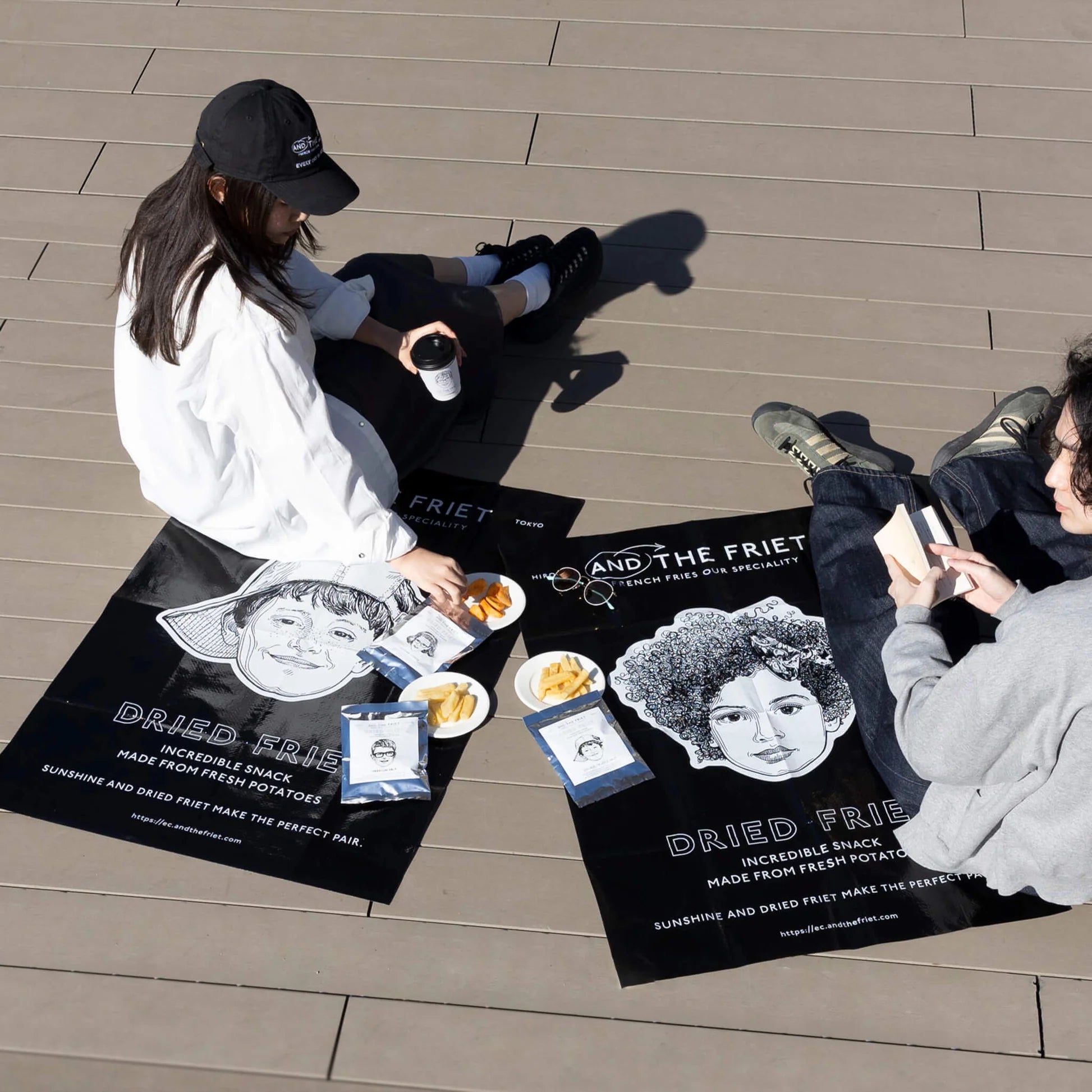 A new design has been added to our popular original picnic sheet. The black sheet features a chic and stylish design featuring a girl's character. This easy-to-carry size for 1-2 people is a great leisure item for both men and women. Only 100 are available, so hurry!